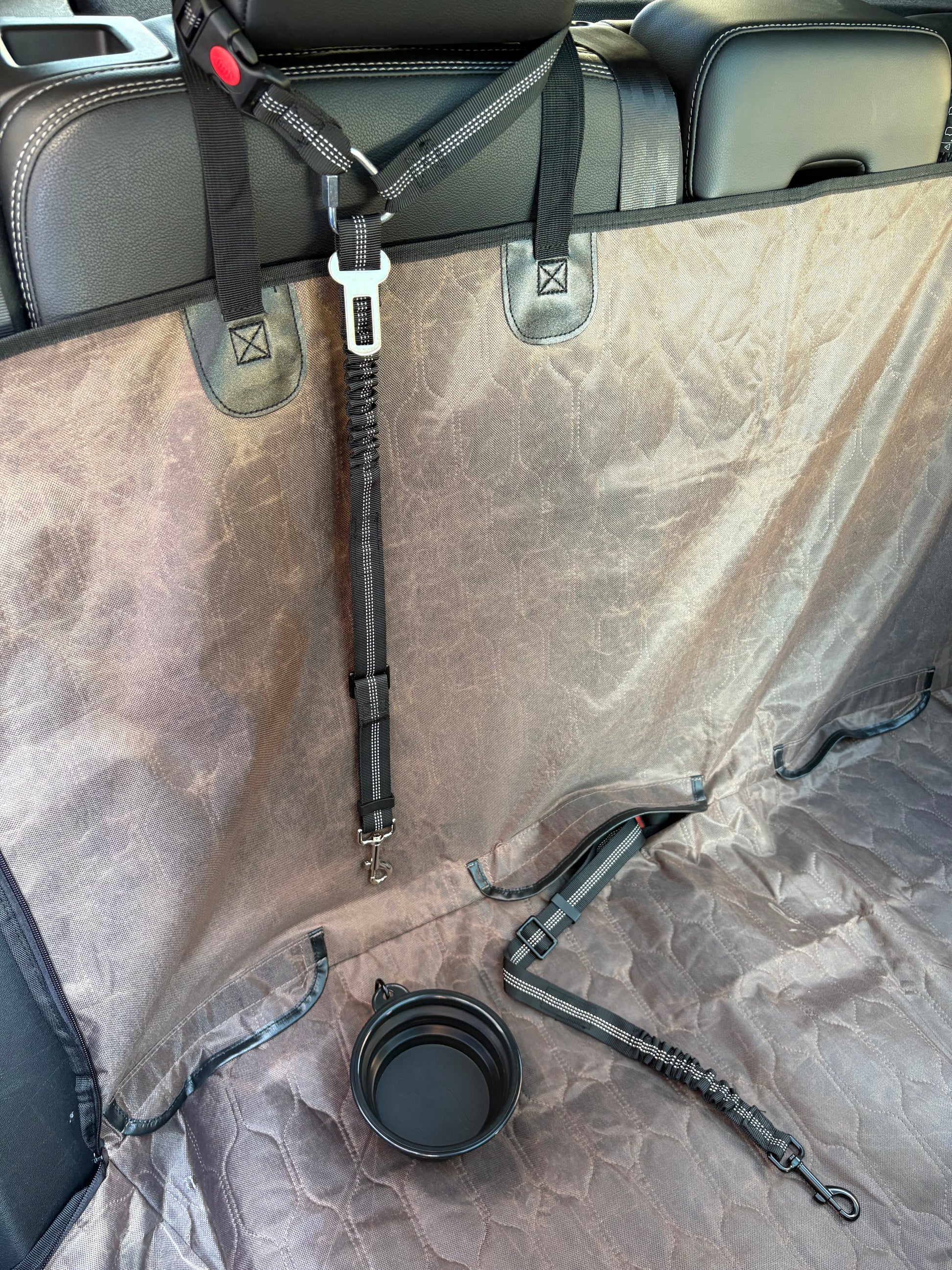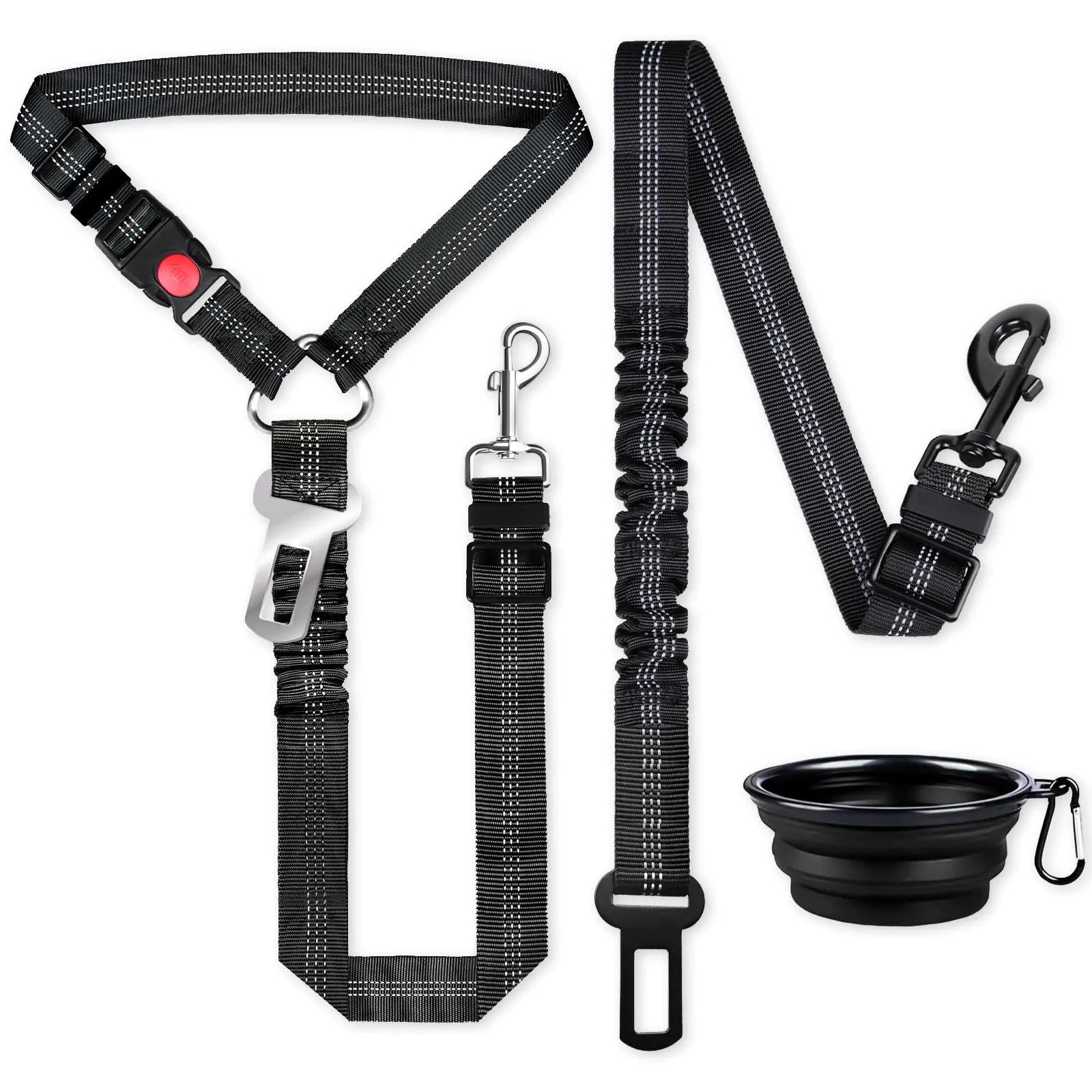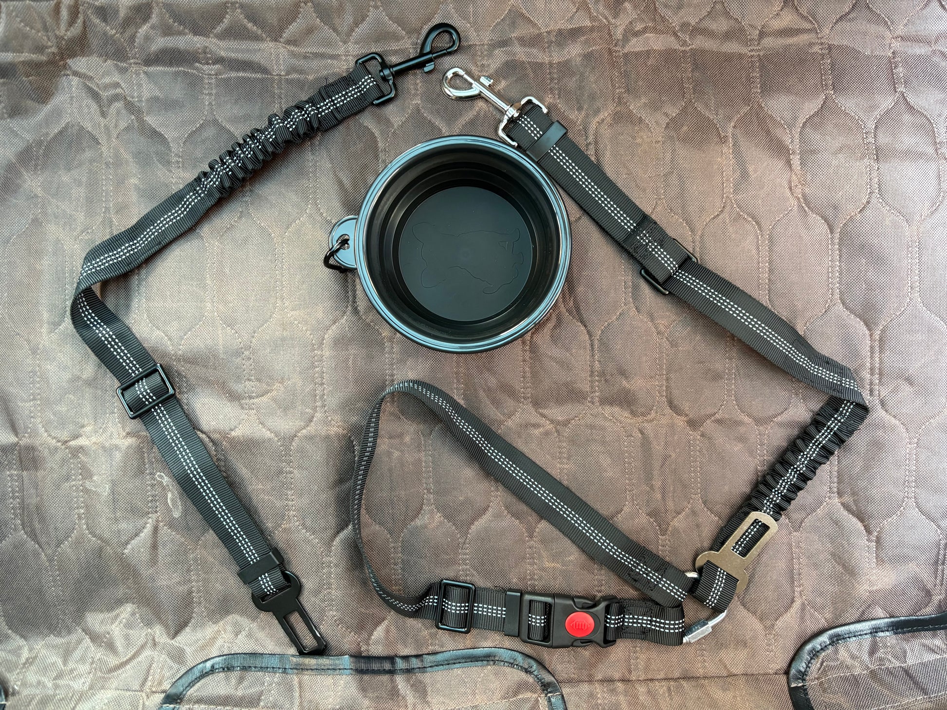 Leash Latch Pro 2: Heavy-Duty Seatbelt Tether + 2-in-1 Headrest Leash Loop & Collapsible Travel Bowl